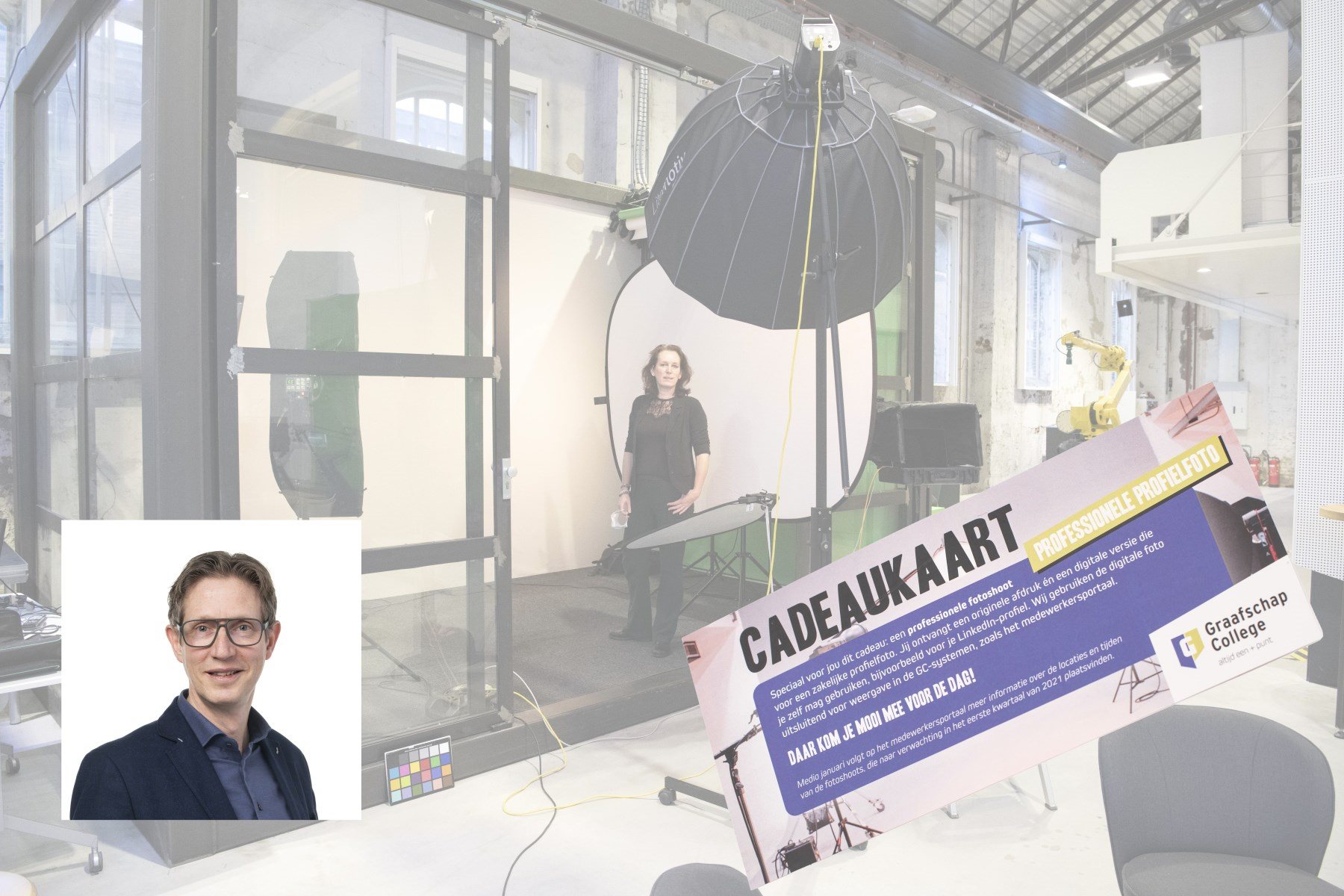Wij mochten vandaag fysiek bij deze online meeting aanwezig zijn en een portretfoto maken van Michiel Gerlagh (lid CvB). Zodat de medewerkers al vast een kleine teaser kregen van wat hen te wachten staat.