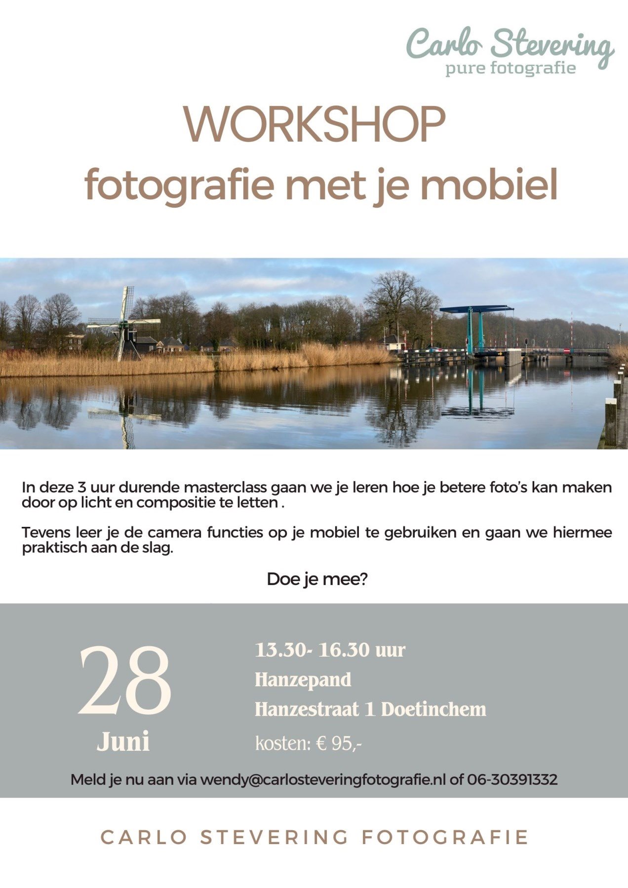 Stuur mij een mail via wendy@carlosteveringfotografie.nl of neem telefonisch contact op: 06-30391332
