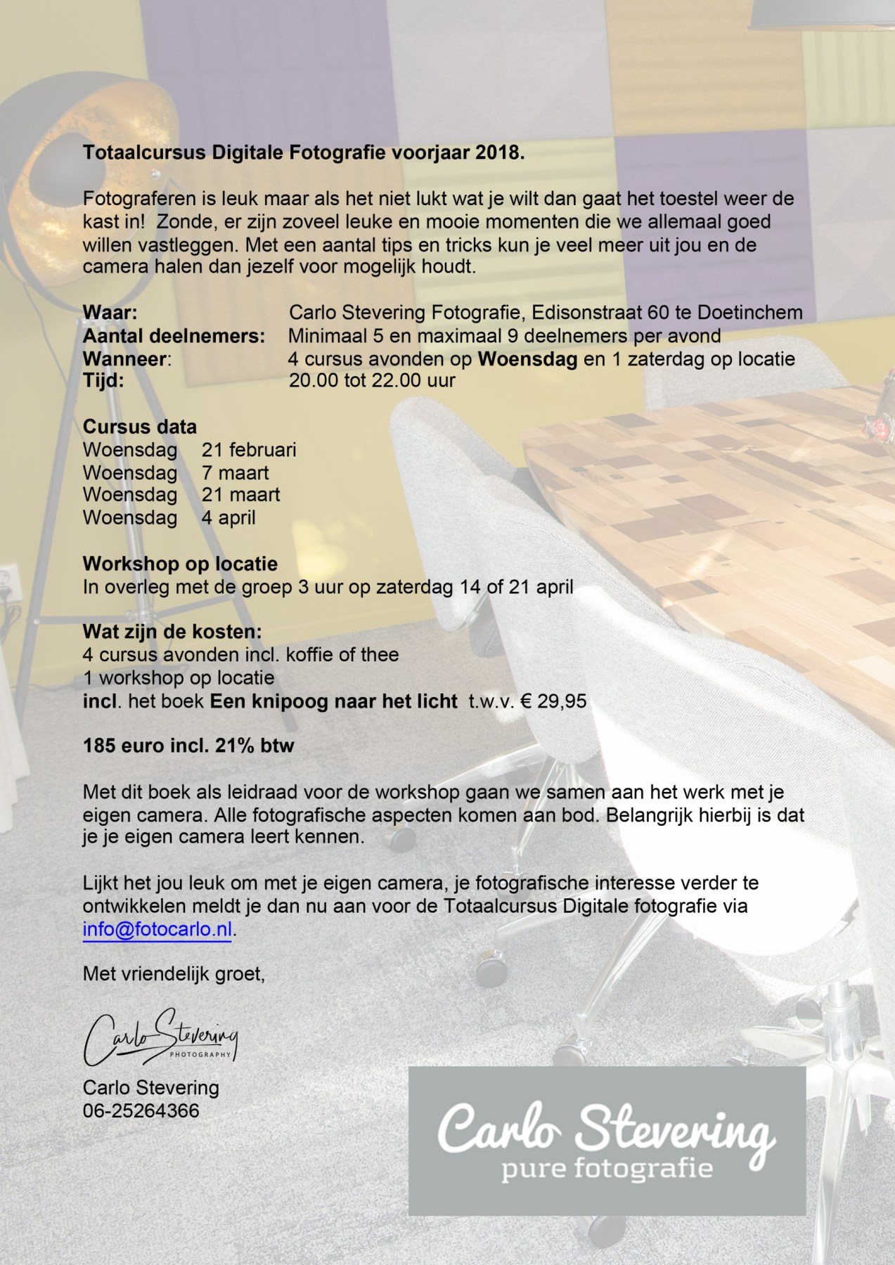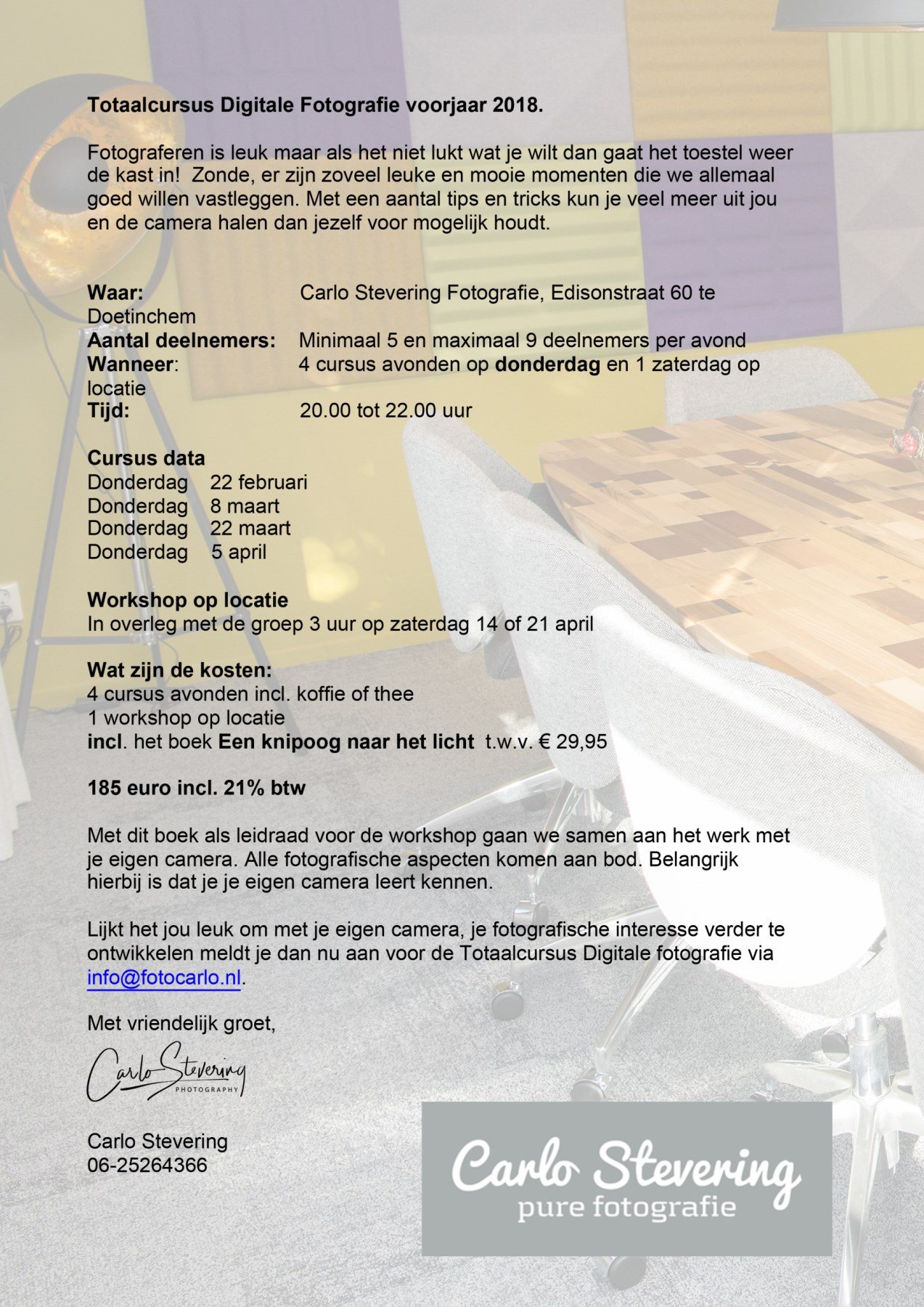 Heb jij ook belangstelling voor een cursus digitale fotografie? Meld je dan aan via info@carlosteveringfotografie.nl. Of bel voor meer informatie met 06-25264366.