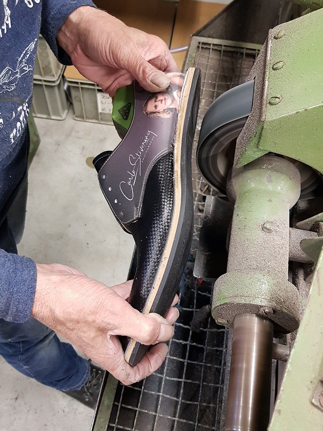 De ambachtelijke schoenproducent Kops Schoenen uit Schaijk heeft in samenwerking met Schoenmode Jeannette uit Gaanderen een gepersonaliseerd paar schoenen gemaakt voor Carlo.